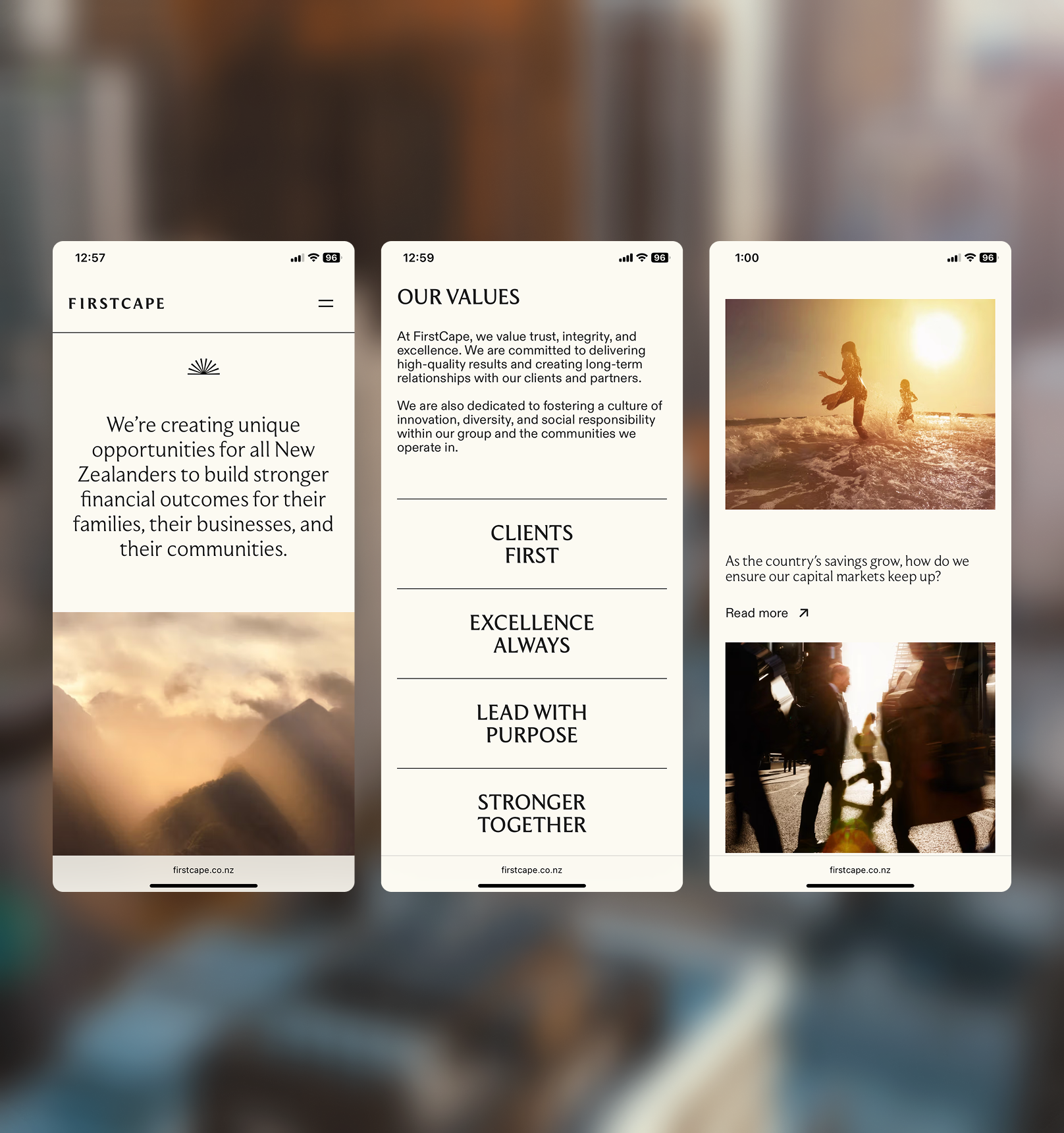 The purpose of this project was to refresh the Firstcape website and build a more polished, user-friendly digital presence that more clearly showcased the brand’s value and character. This project was a collaborative effort between me and a senior designer while I was working at Wildlabs, where I contributed to early concept exploration and crafted visual design directions for the new site.