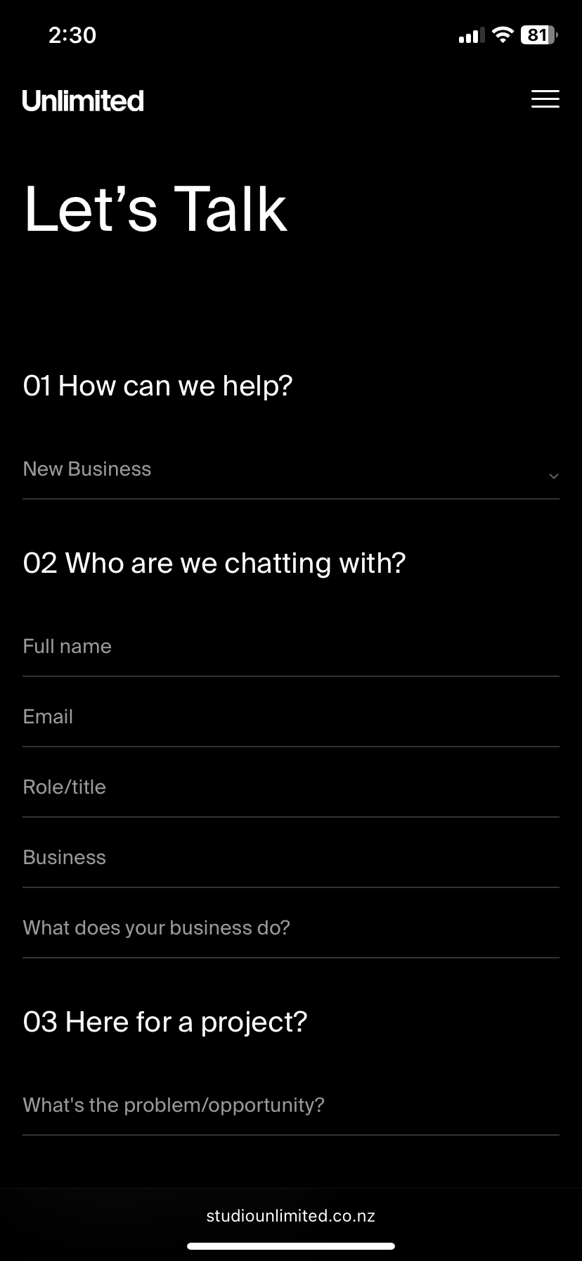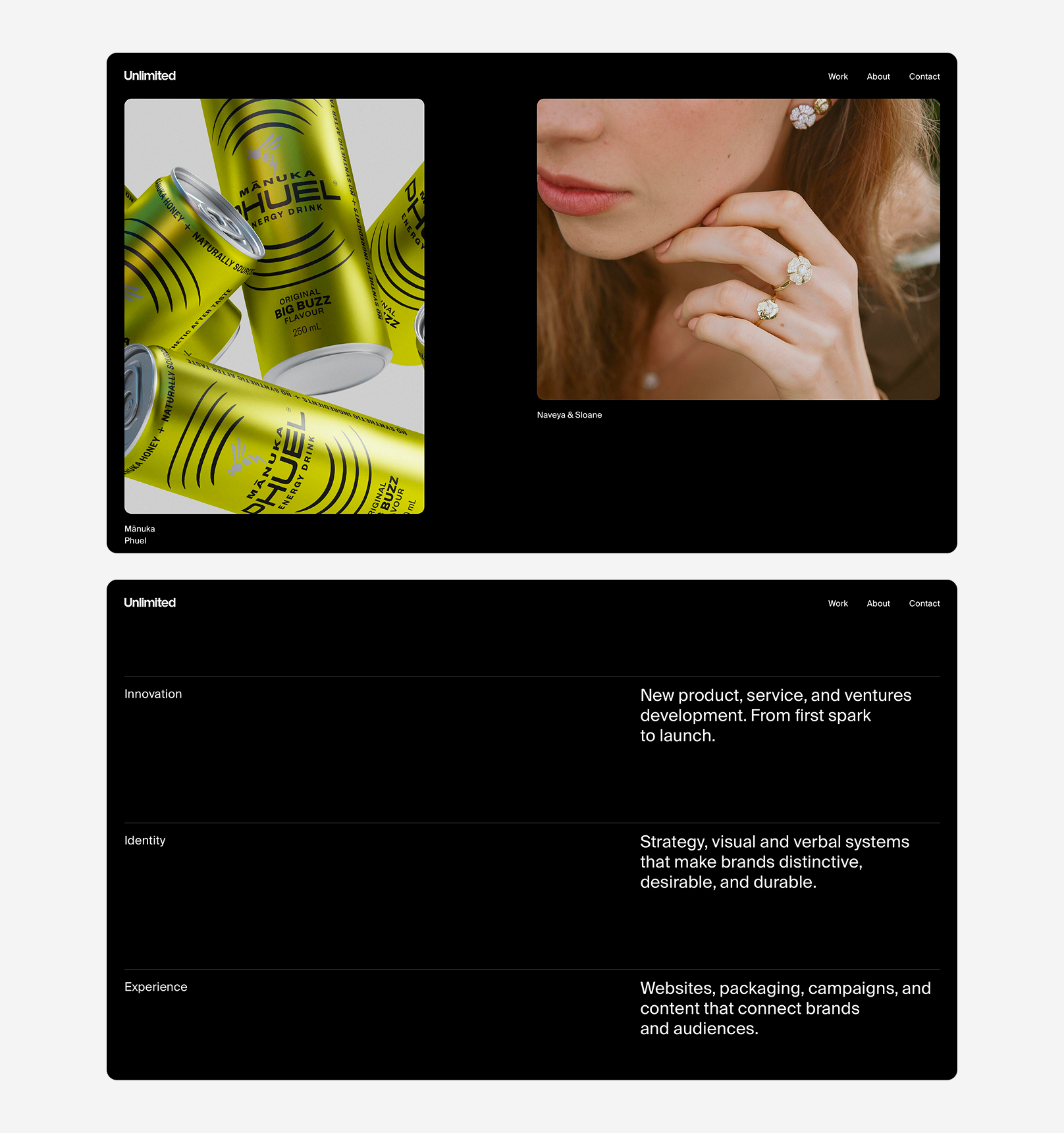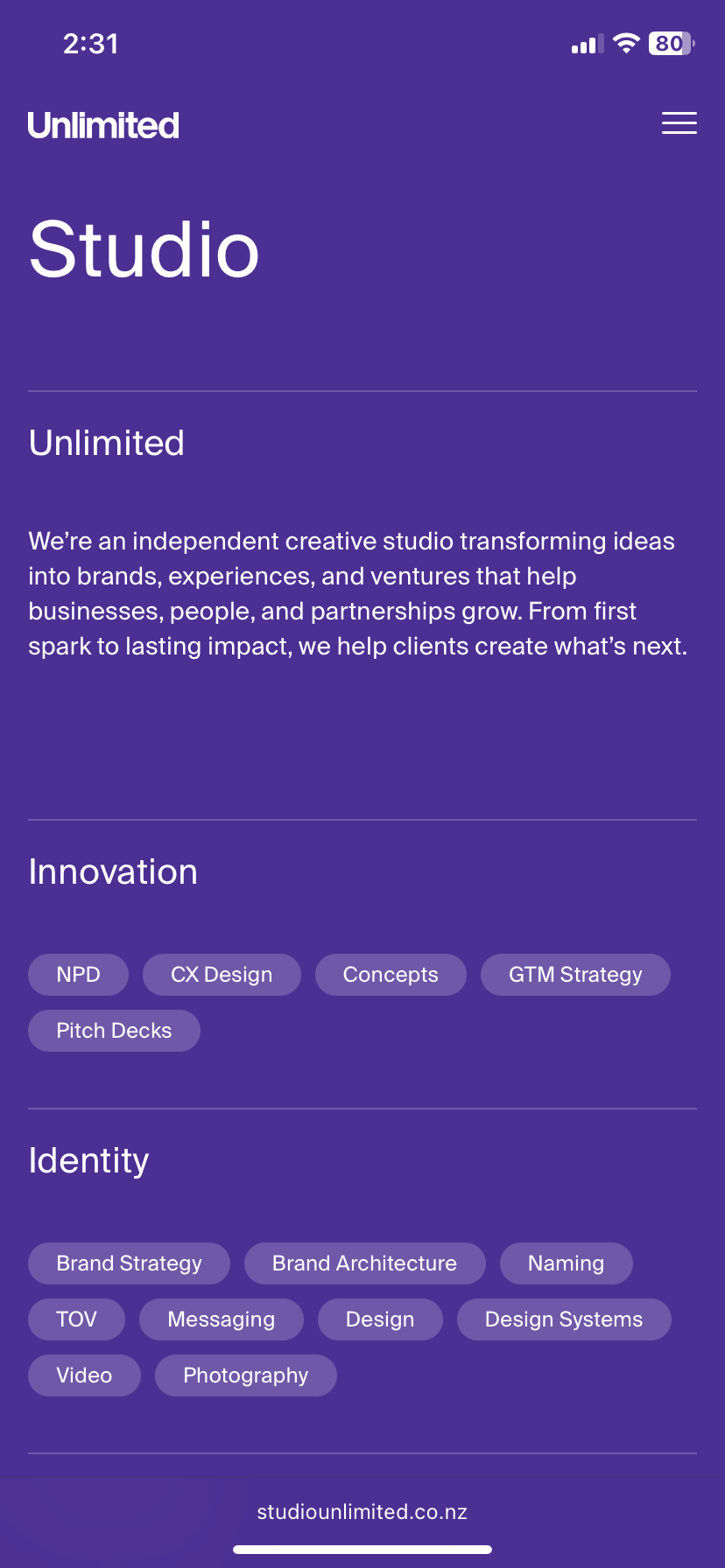 The purpose of this project was to refresh the Studio Unlimited website and create a more polished, engaging digital experience that better reflected the studio’s work, values, and creative approach. This project was a collaborative effort between me and a senior designer at New Territory, where I contributed to early concept development and crafted visual design directions for the updated site.